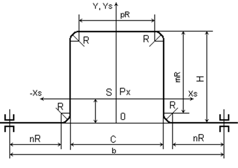 Вычисляем координаты упругого центра xS и yS. Вследствие симметричности упругий