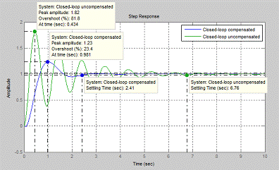 uncompensated system. So we can say that overshoot is less and settling time of
