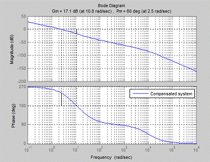 So gain margin is 17.1 dB and phase margin - 60