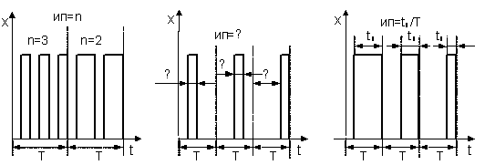 для переменных сигналов, длительность и фаза импульсов, их количество и