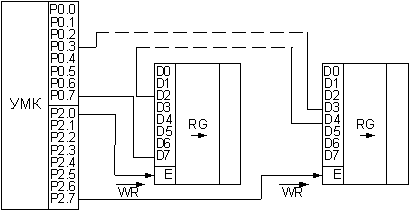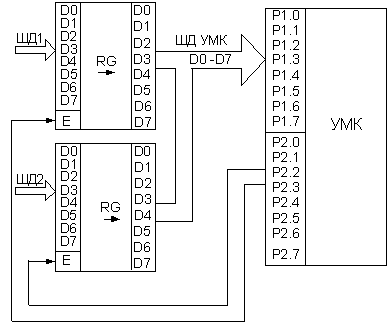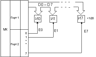 которая через порт 2 подает сигнал разрешения Е на соответствующий разряд