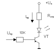 Рисунок 69 - Схема подключения светодиода через инвертор.