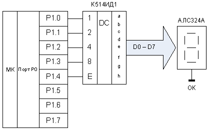 Рисунок 71 - Схема подключения индикатора непосредственно к порту