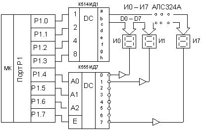 Рисунок 72 - Схема управления индикатором с помощью дешифратора.