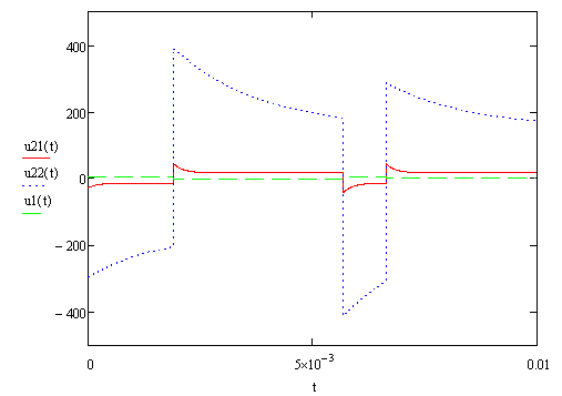 где u21(t)- выходной сигнал при μ1=10, u22(t) -