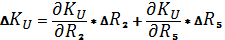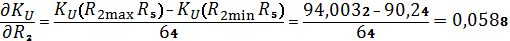 при максимальном и минимальном отклонениях номиналов элементов, определяющих Ku.