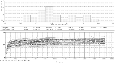 произвела моделирование с учетом варьирования номиналов на все элементы схемы.