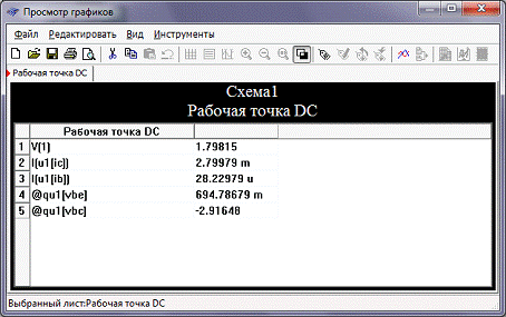 транзистора ГТ311. В программе приведен анализ схемы «Рабочая точка DC».