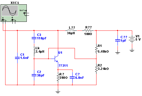 была разработана схема транзисторного LC-автогенератора, процесс разработки