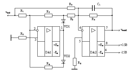 VD1-VD2 и DA2. На элементах R9 - R10, R14 - R15, VD1-VD2 и первой половине DA2