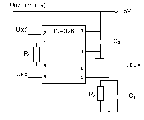 Для данного датчика используем инструментальный усилитель INA326. Симметричность ИУ,