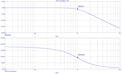 Рис. 8. АЧХ и ФЧХ ФНЧ1.