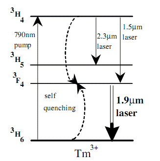 Накачка осуществляется c основного состояния 3H6 на уровень 3H4. Заселение верхнего