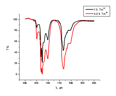 спектральных характеристики двух образцов кристаллов Tm: CaF2 с различной