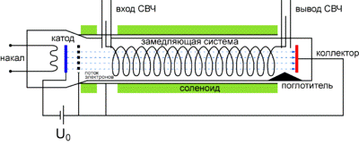 На входе и выходе замедляющей системы есть специальные устройства для
