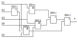 минимизировать логическую функцию и синтезировать ее в заданном базисе (таблица