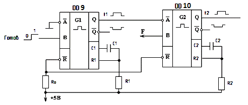 в ходе работы, представлена на рисунке 1. На рисунке 1 приняты обозначения: G1 и G2 - одновибраторы.
