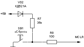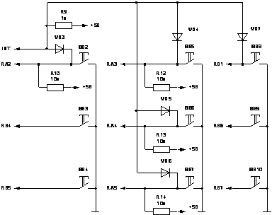 Кнопки SB3, SB4, SB9, SB10 подключены к входам RB4 - RB7. Их нажатие также приводит к прерыванию. Прерывания от кнопок SB3, SB4, SB9, SB10 разрешены только в