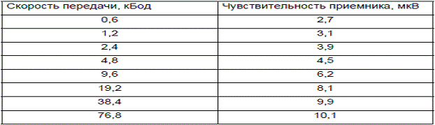 маломощный телеметрический модем. Модем обладает следующими техническими