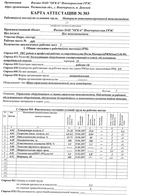 ОАО «ОГК-6» Новочеркасской ГРЭС. В ходе работы на рабочем месте были выявлены