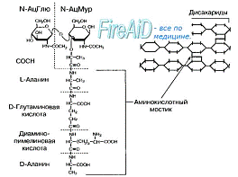 (L-лизином или диаминопимелиновой кислотой в зависимости от вида бактерии).