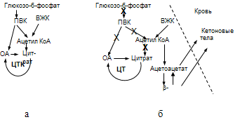 Ацидоз, из-за накопления кислых продуктов (ацетоацетата, β-оксибутирата, лактата, пирувата и