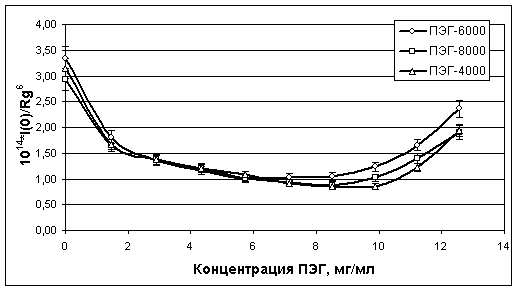 ПЭГ-6000, ПЭГ-8000, ПЭГ-20000) в допреципитационном диапазоне концентраций