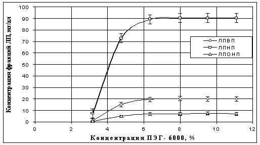 диапазоне концентраций полиэтиленгликолей 3 ÷ 11% позволило выбрать в качестве оптимального ПЭГ-6000 с