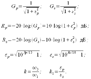 заданному типу фильтра (Чебышева первого рода, Чебышева второго рода или
