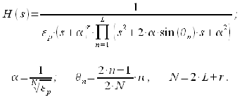 характеристики аналогового нормированного ФНЧ требуемого порядка