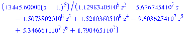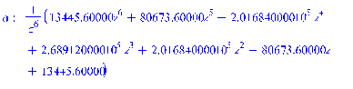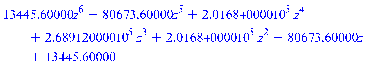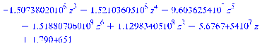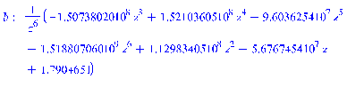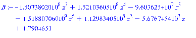 > B:=(-1.50738020e8*z^3+1.52103605e8*z^4-9.6036254e7*z^5+5.3466611e7*z^6-1.572273671e9*z^6+1.12983405e8*z^2-5.6767454e7*z+1.7904651);