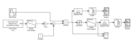 рассчитан звуковой сигнал, была произведена амплитудная модуляция и