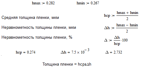 и минимальной толщине пленки в пределах пластины (-5…5). Максимальное значение