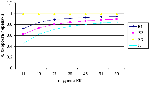 вероятности неправильного приема в системе с РОС-ОЖ от длины блока