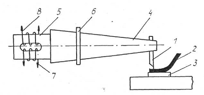 концентратор (волновод); 5 - преобразователь (вибратор); 6 _ устройство