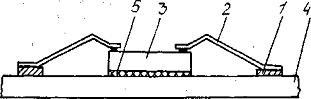 носитель; 2 - ситалловая плата; 2 - кристалл; 4 - проволочные выводы,