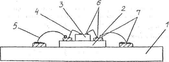 проволочных выводов с КП с помощью УЗ сварки; 7 - соединение проволочных