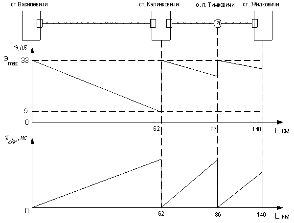 затухание магистральной линии связи на участке Василевичи - Калинковичи -