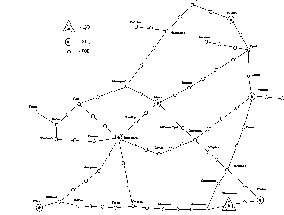 Спроектирована схема расположения центров технической эксплуатации сети, а так