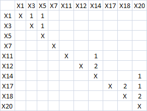 степень связности между модулями, стоящими в соседних позициях (Y),
