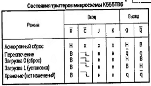 К555ТВ6-два JK-триггера в одном корпусе. Питание: 7-общий,