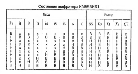 Таблица 2. Состояния шифратора КМ155ИВ1.