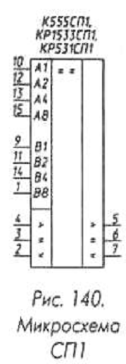 появляется на выходе <, на выходах = и > - лог.0. Питание: 8-общий, 16-+5В.