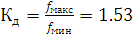 Номинальный коэффициент перекрытия диапазона в соответствии с