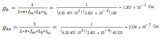 Уточняем значение эквивалентной проводимости контура: