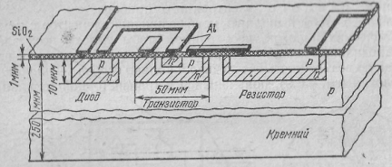 В полупроводниковой интегральной микросхеме все элементы и межэлементные