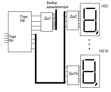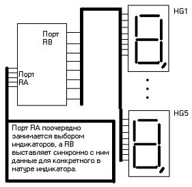 PIC16F84, интерфейс дисплея.
