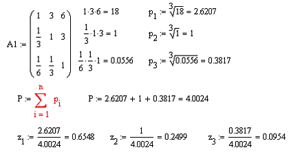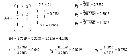 4.3 Вычисление вектора приоритетов для матрицы попарных сравнений