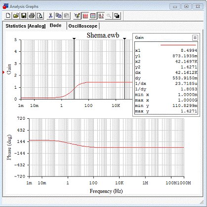 Как видно из АЧХ частота среза усилителя 8.49 Гц.