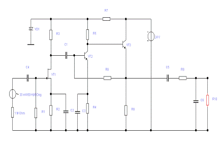 транзистор по схеме с общим истоком c емкостной связью между, VT2 p-n-p с непосредственной